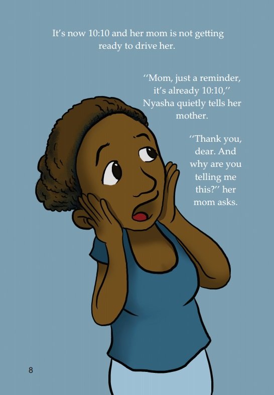 Nyasha waits, waits, and waits but she does not get discouraged. What does she do to stay so patient? Why is she so excited to get to her friend’s house today? You can soon find out.